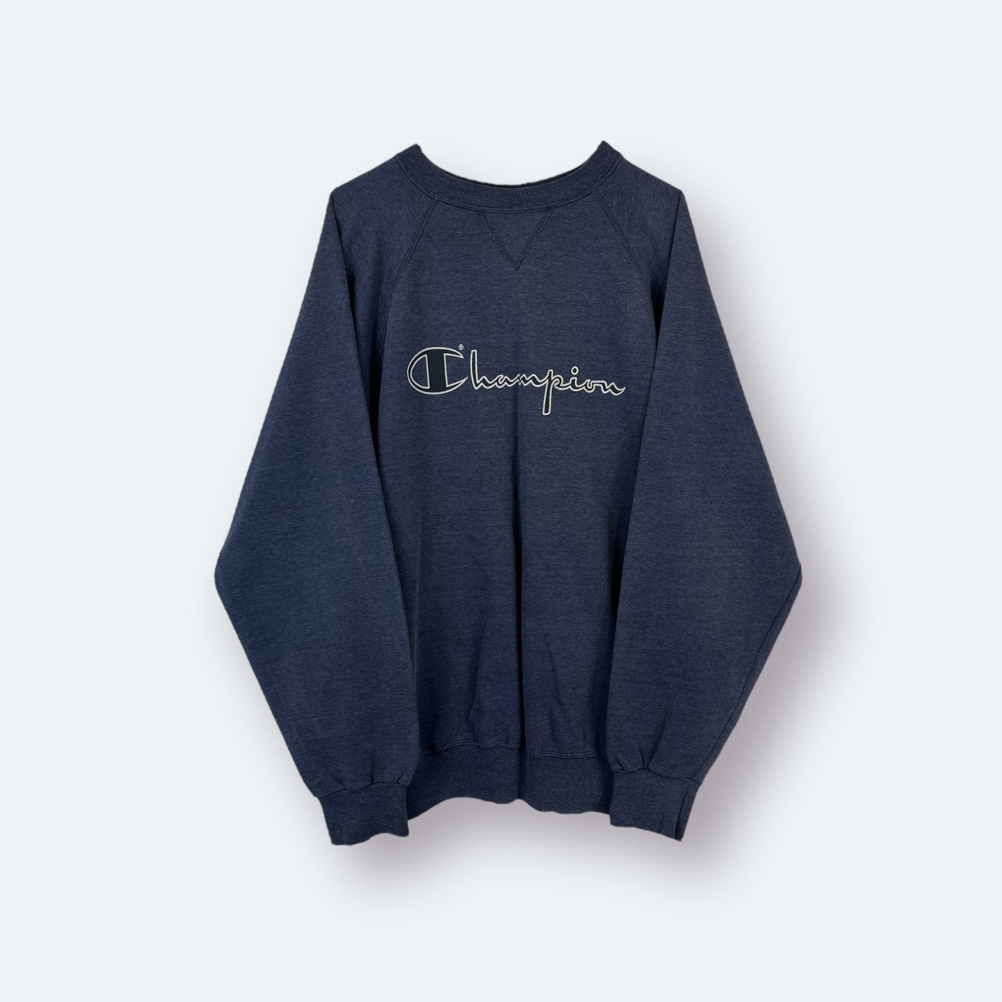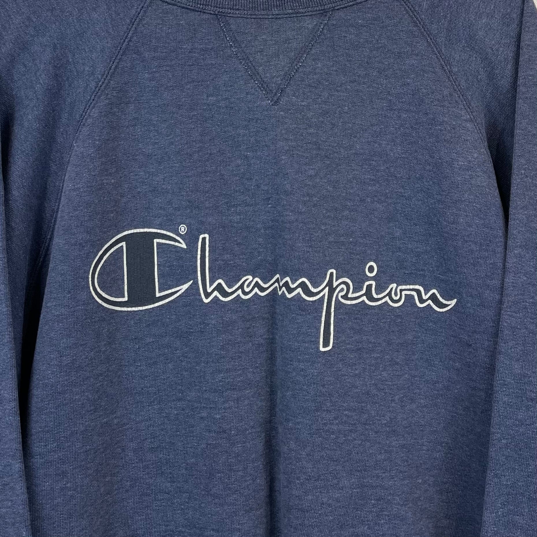 Champion Print Sweater 80s Vintage Blau L