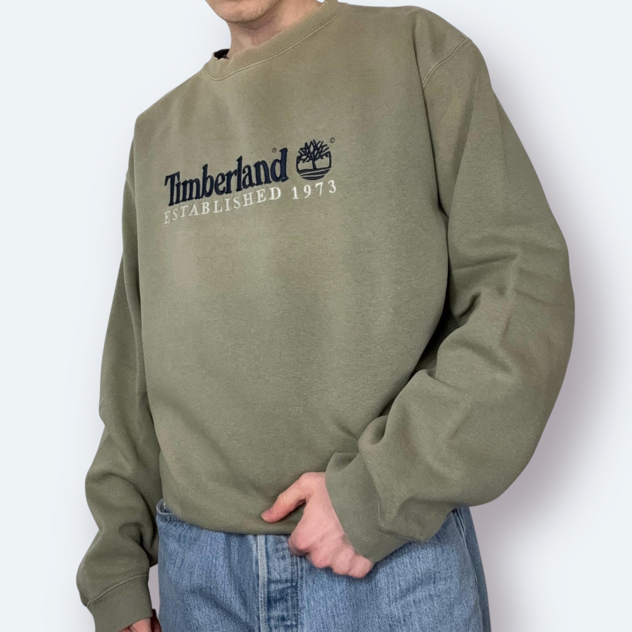 Timberland 90s Distressed Vintage Big Logo Sweater Khaki XL