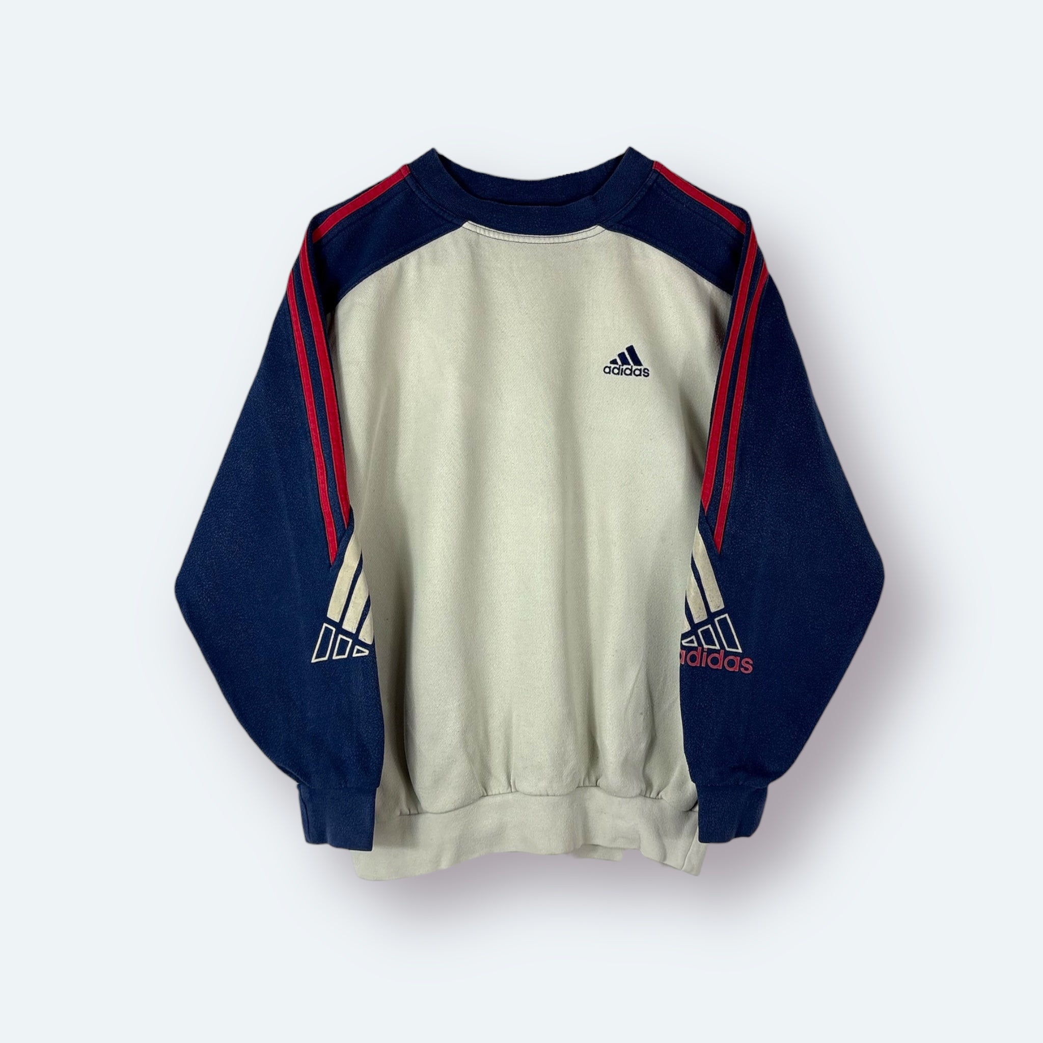 Adidas 90s Vintage Sweater Beige Marineblau XS