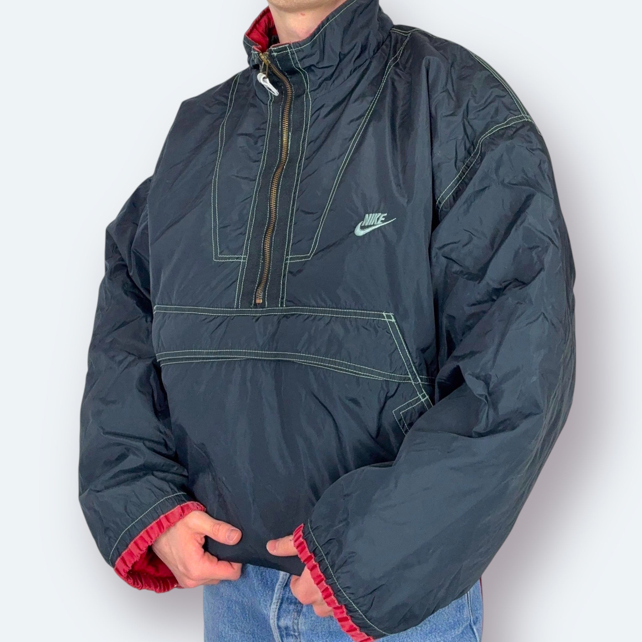 Nike 90s Vintage Outdoor Windbreaker Übergangsjacke Schwarz XL