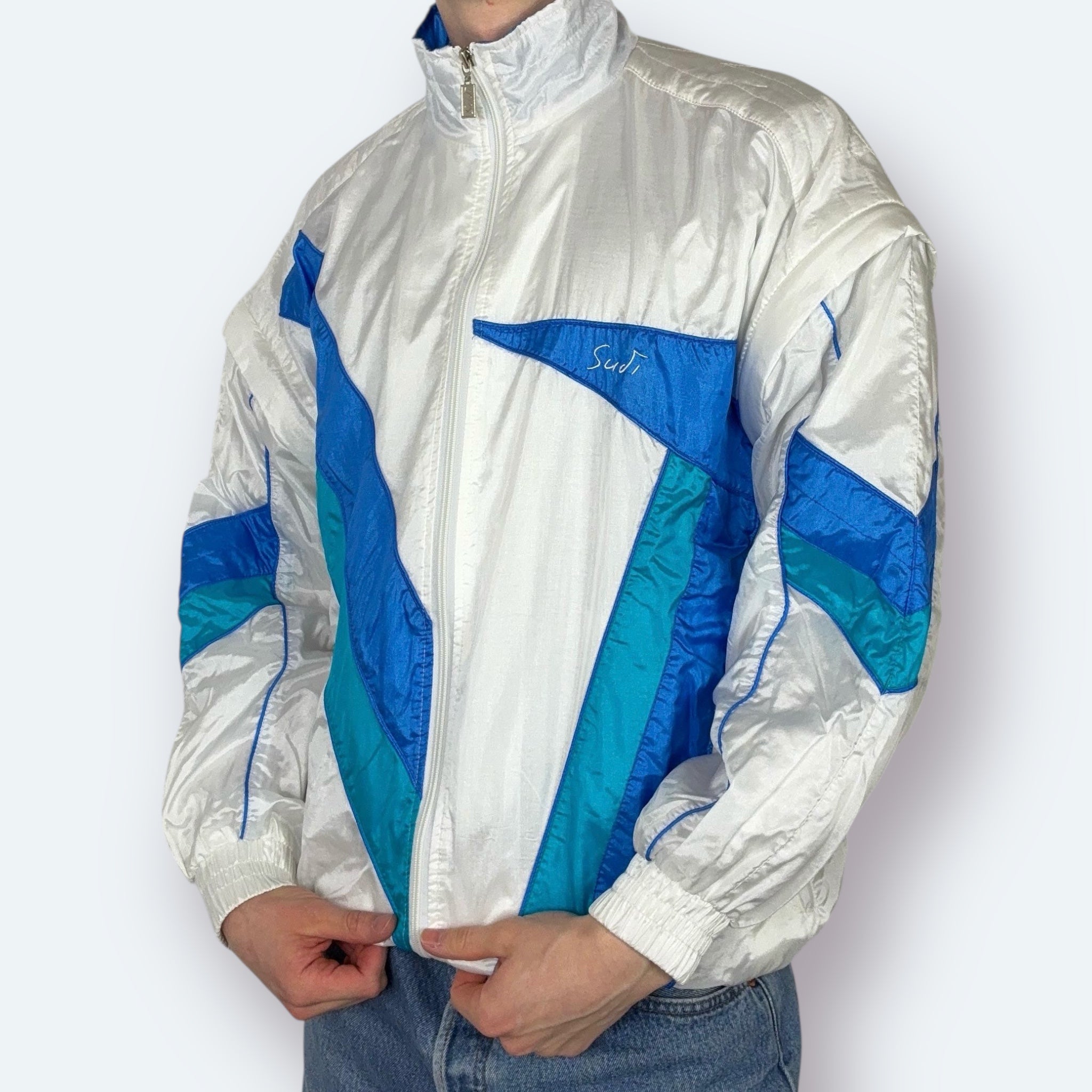 Sudi Vintage Trainingsjacke Weiß Blau M