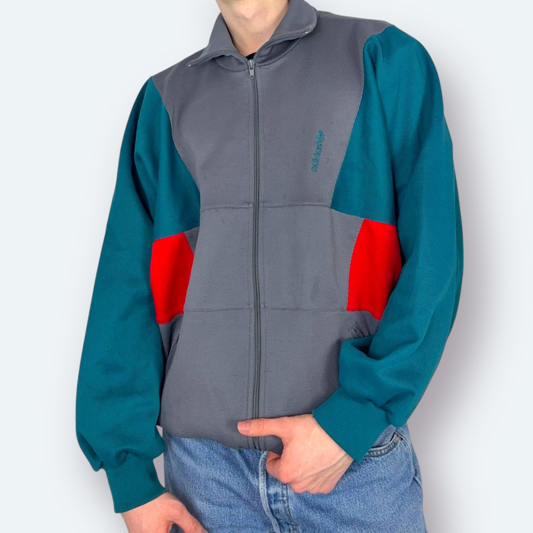 Adidas 80s Vintage Trainingsjacke Grau Türkis XL