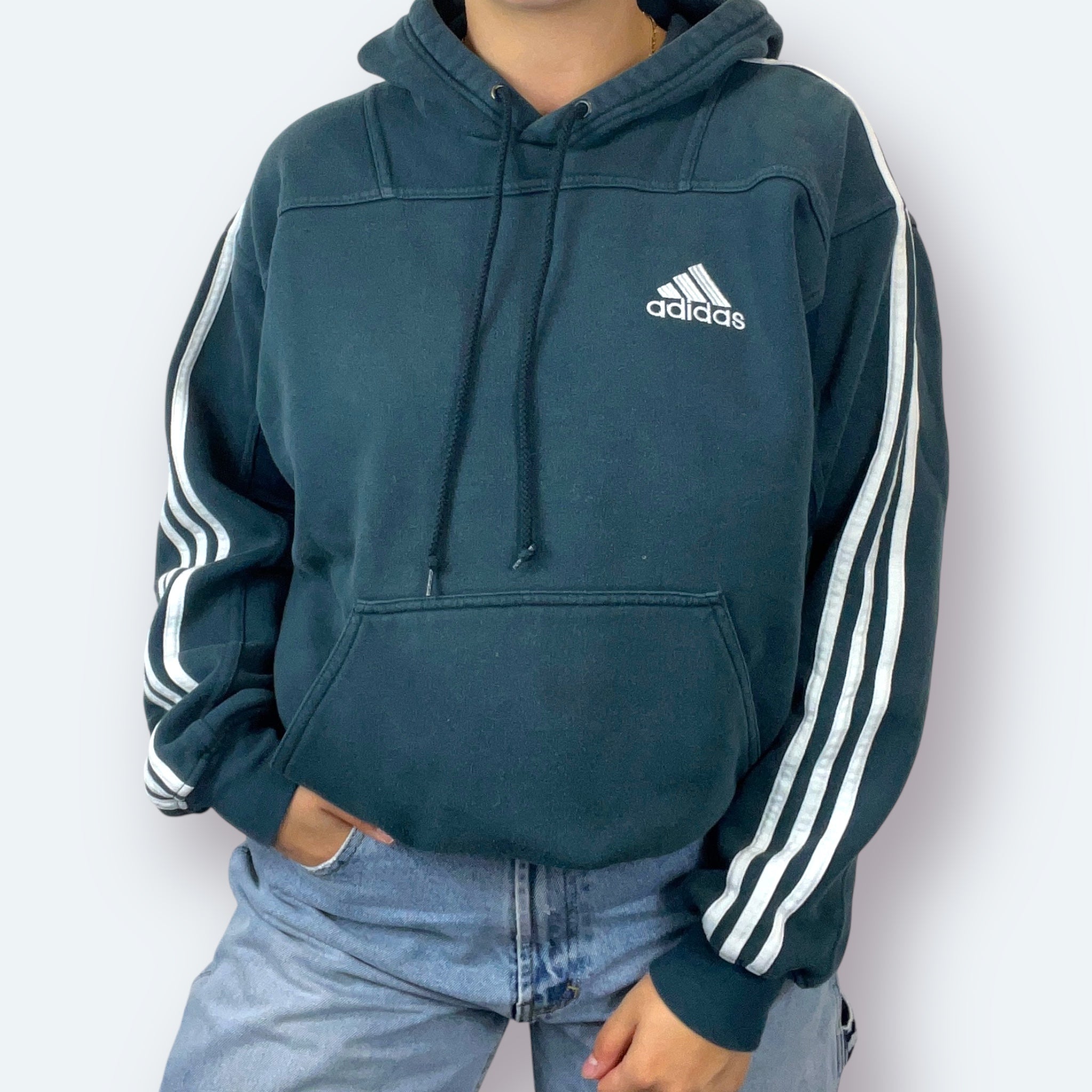 Adidas Hoodie 1999 bestickt Grau Blau S