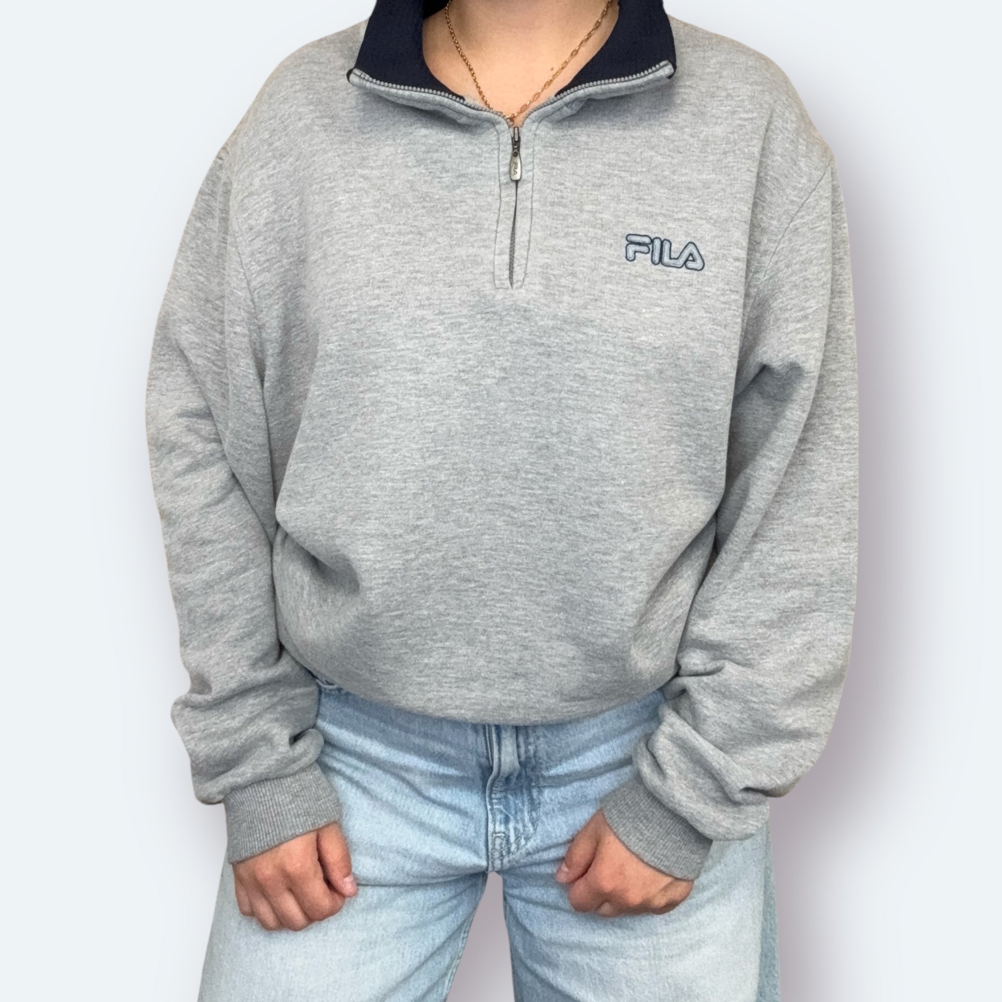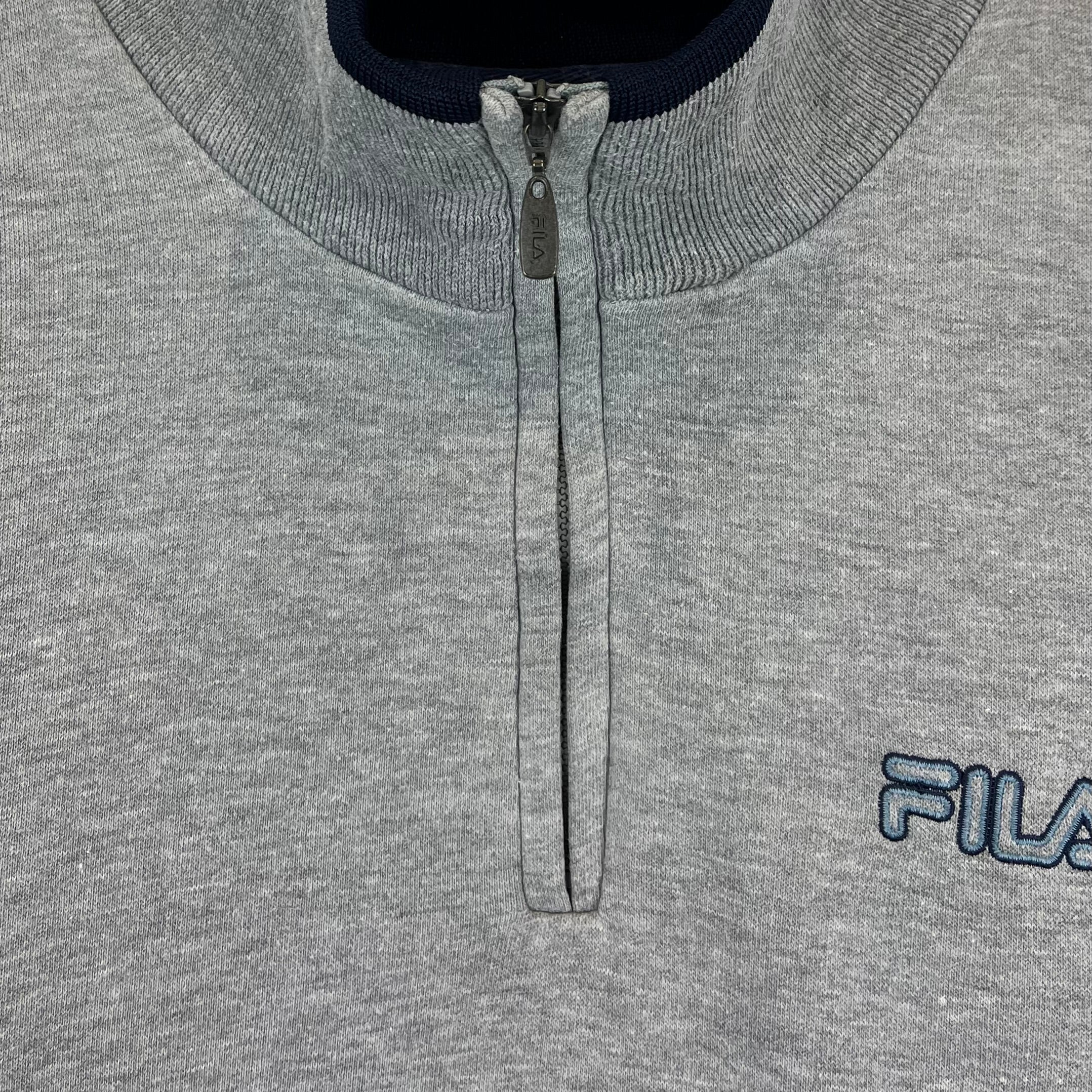 Fila 90er Vintage Half Zip Sweater bestickt Grau M