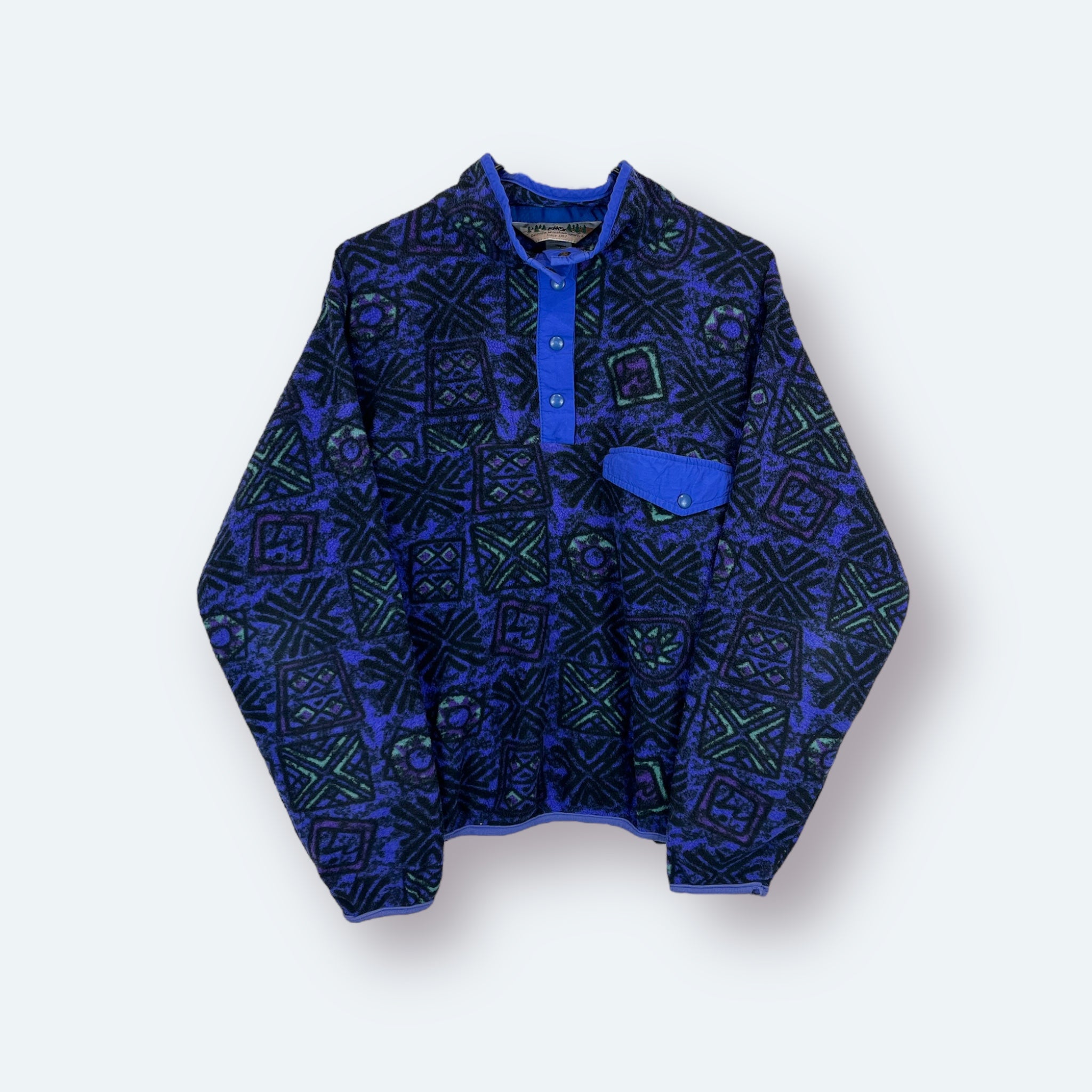 EMS Vintage Fleece Half Button up Sweater Blau Damen M